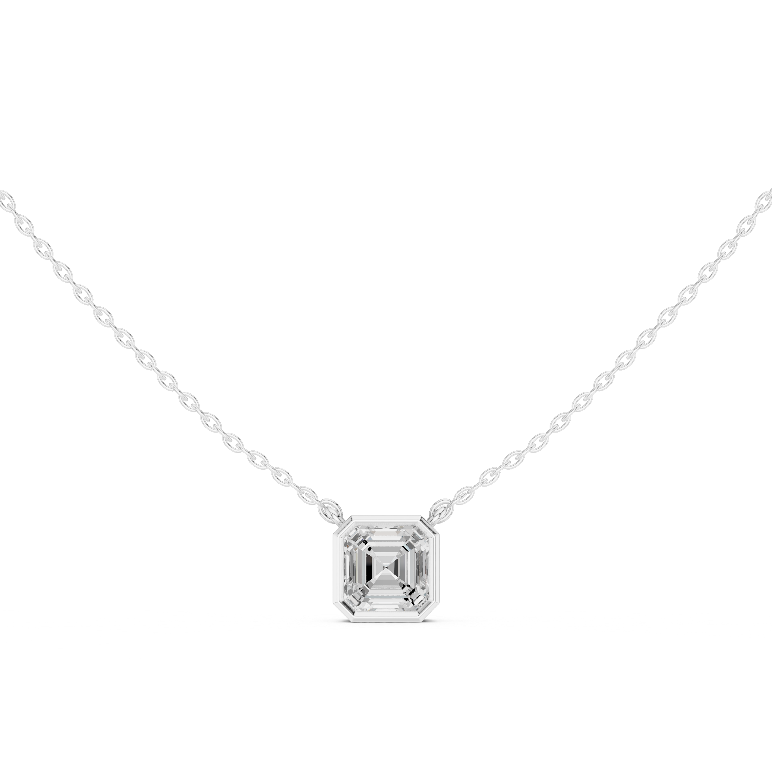 Bezel Set Solitaire Necklace - Asscher Cut