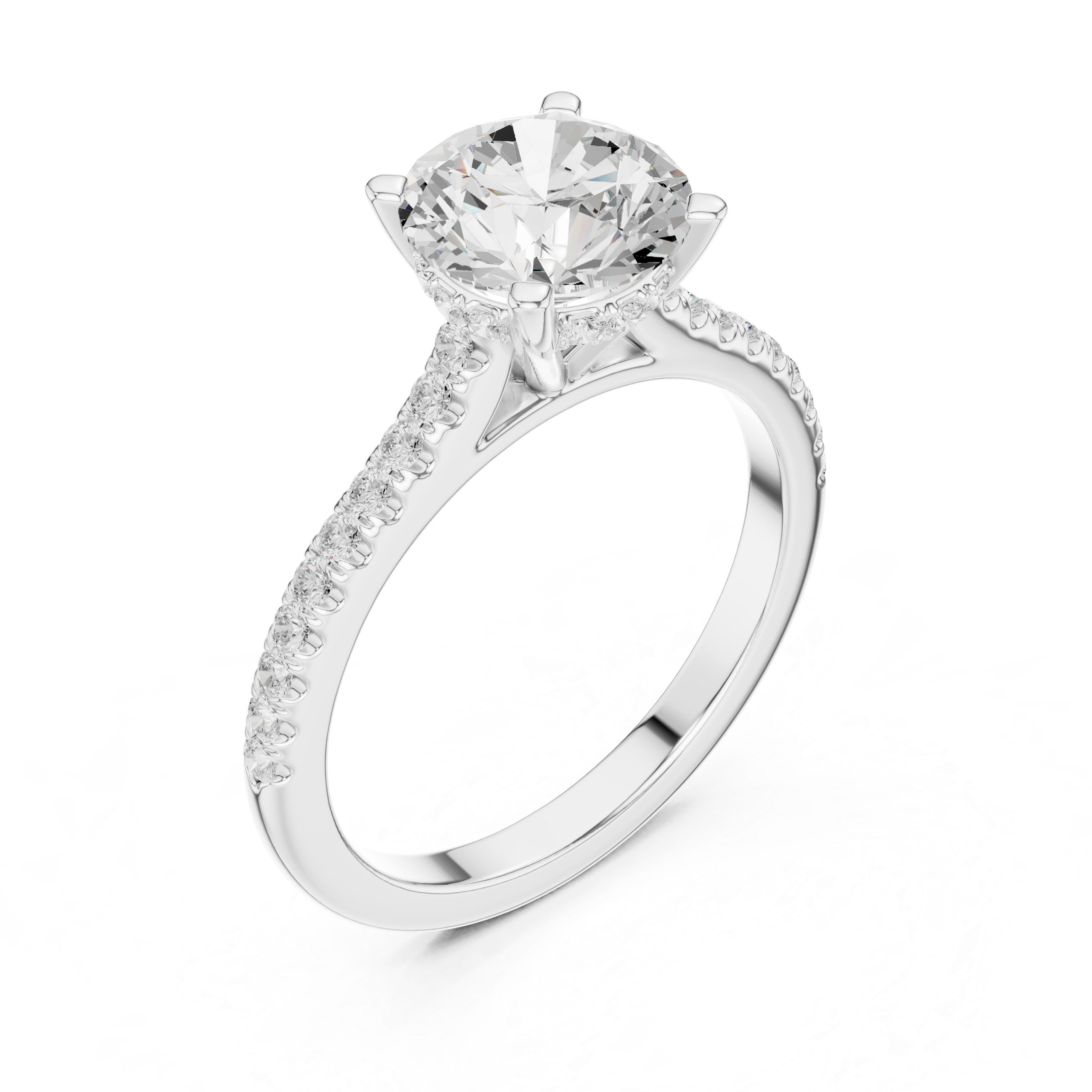 The Classic Pave Hidden Halo offers a refined design where delicate pave-set diamonds encircle the center stone subtly beneath the setting. This innovative hidden halo enhances brilliance without overpowering the main gem, providing timeless elegance and understated sparkle for a sophisticated look. Ideal for those seeking expert craftsmanship with a modern twist on a classic style.