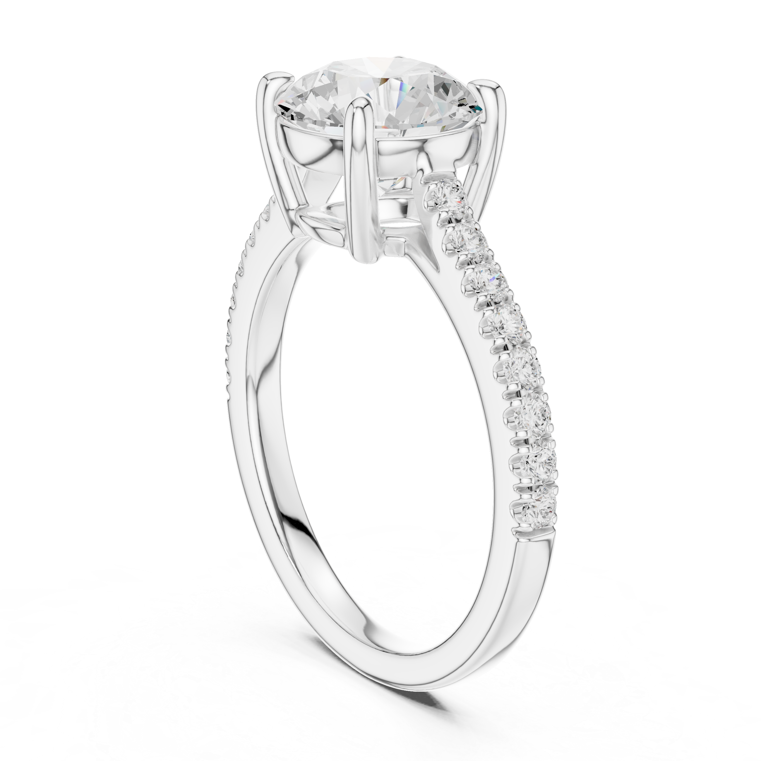 This Lab Grown Diamond Engagement Ring features a solitaire setting enhanced by a halo of pave diamonds, blending sophistication with modern craftsmanship. The lab-grown diamond offers exceptional clarity and brilliance through a sustainable creation process. Its solitaire design focuses attention on the central stone, while the surrounding halo and delicate pave accents increase sparkle and visual impact. Ideal for those seeking an elegant yet ethically conscious symbol of lifelong commitment.