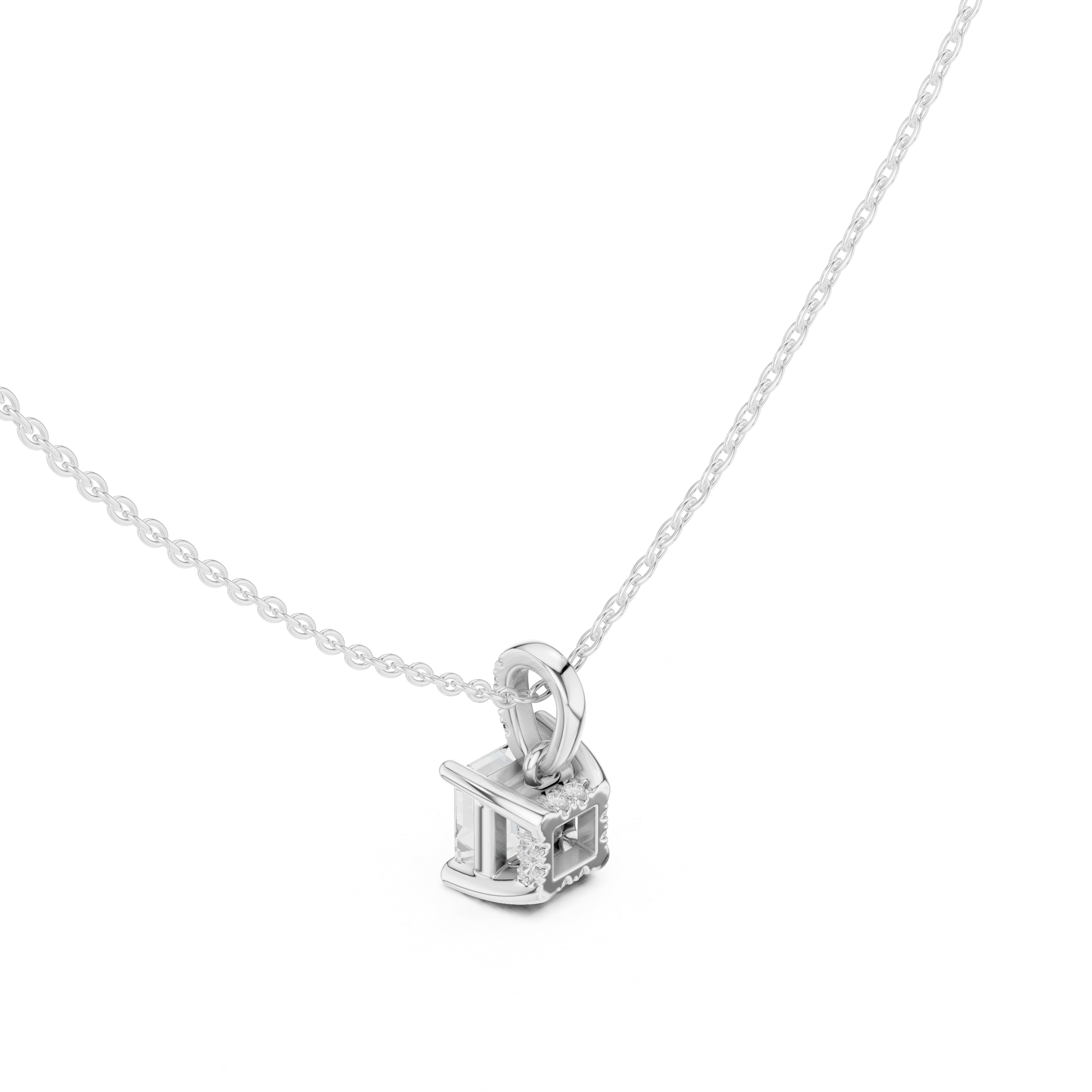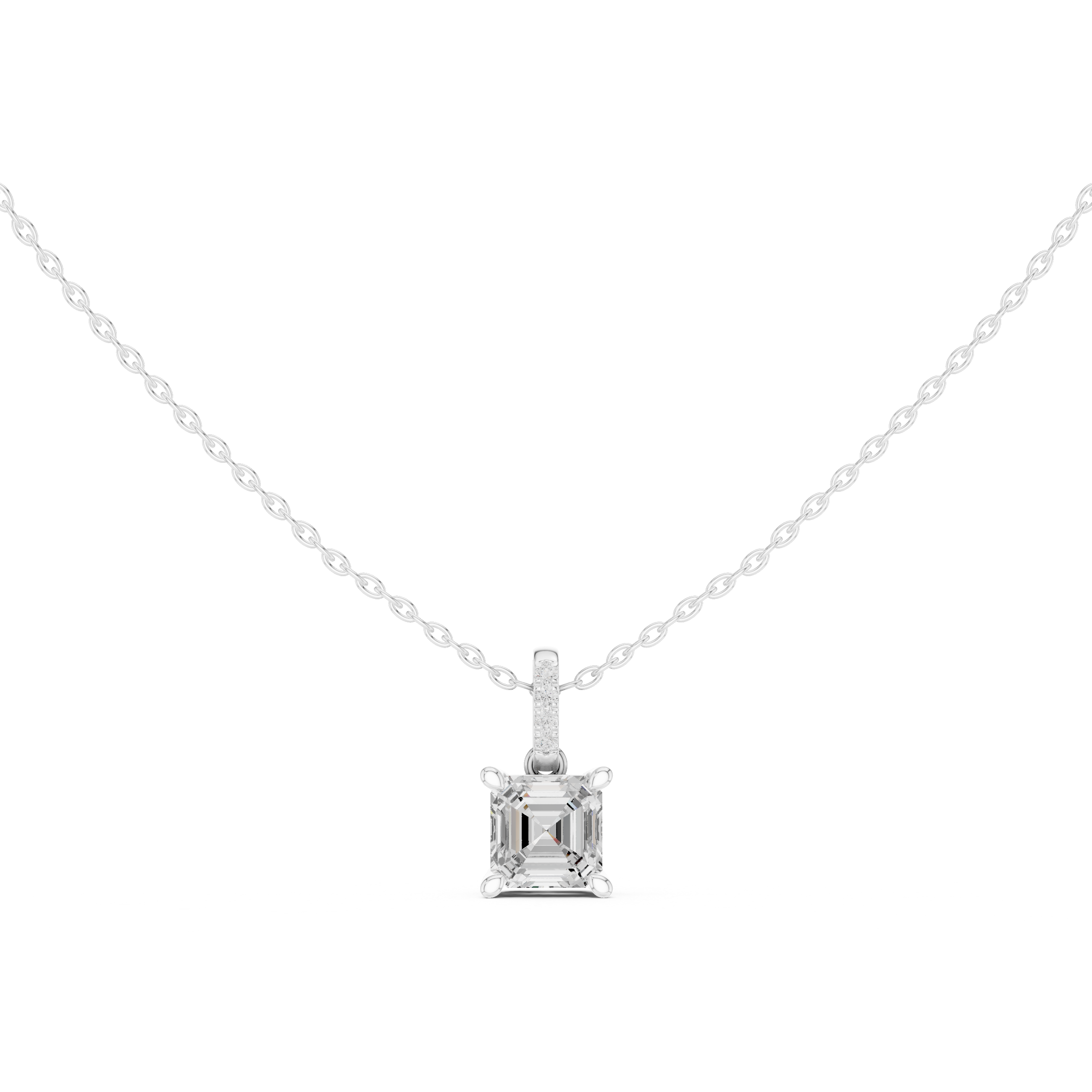Solitaire Necklace with Hidden Halo - Asscher Cut Lab Grown Diamond