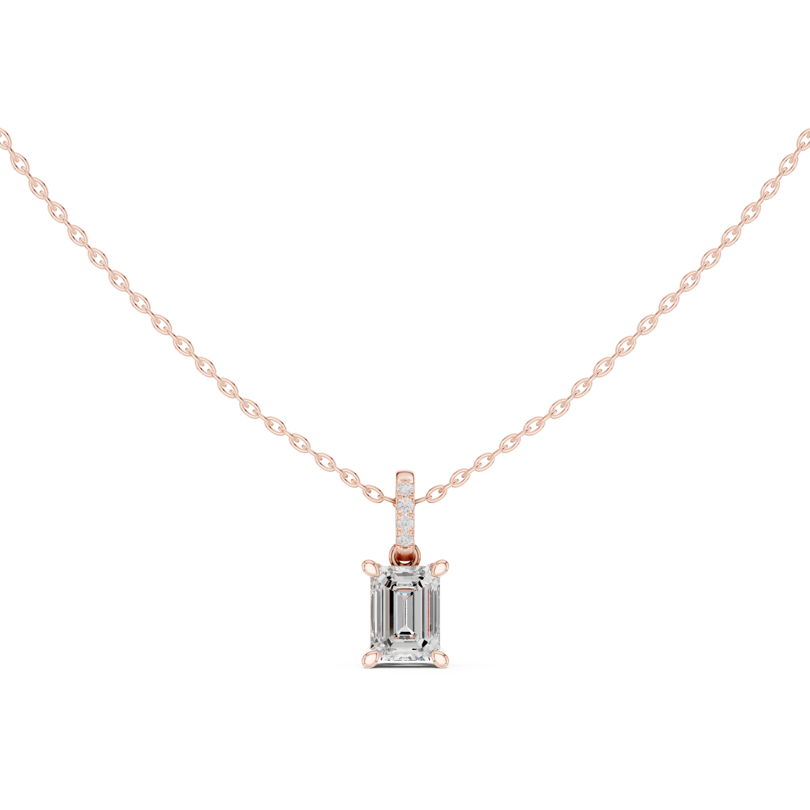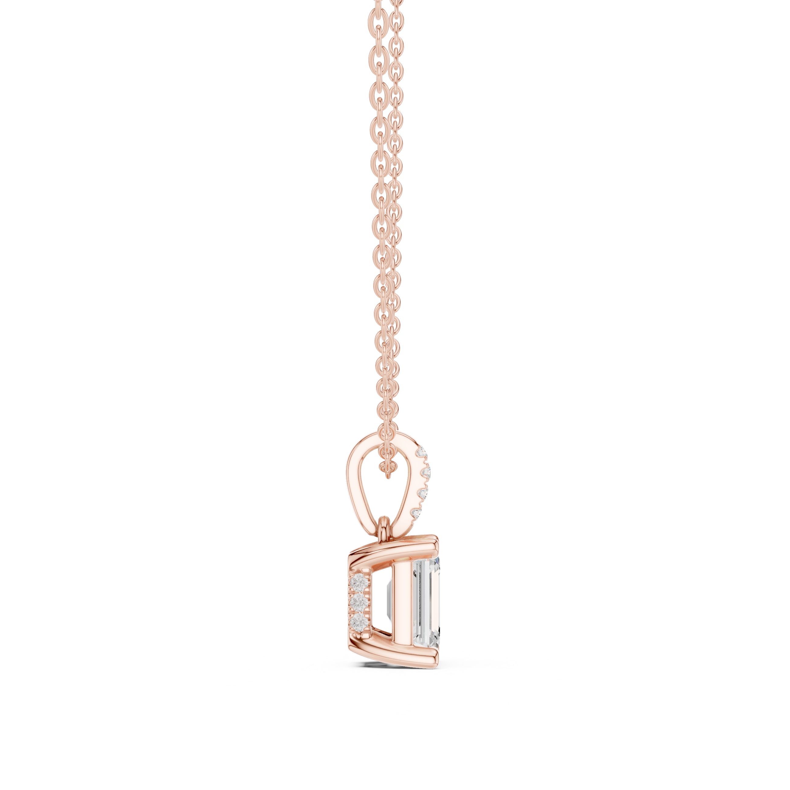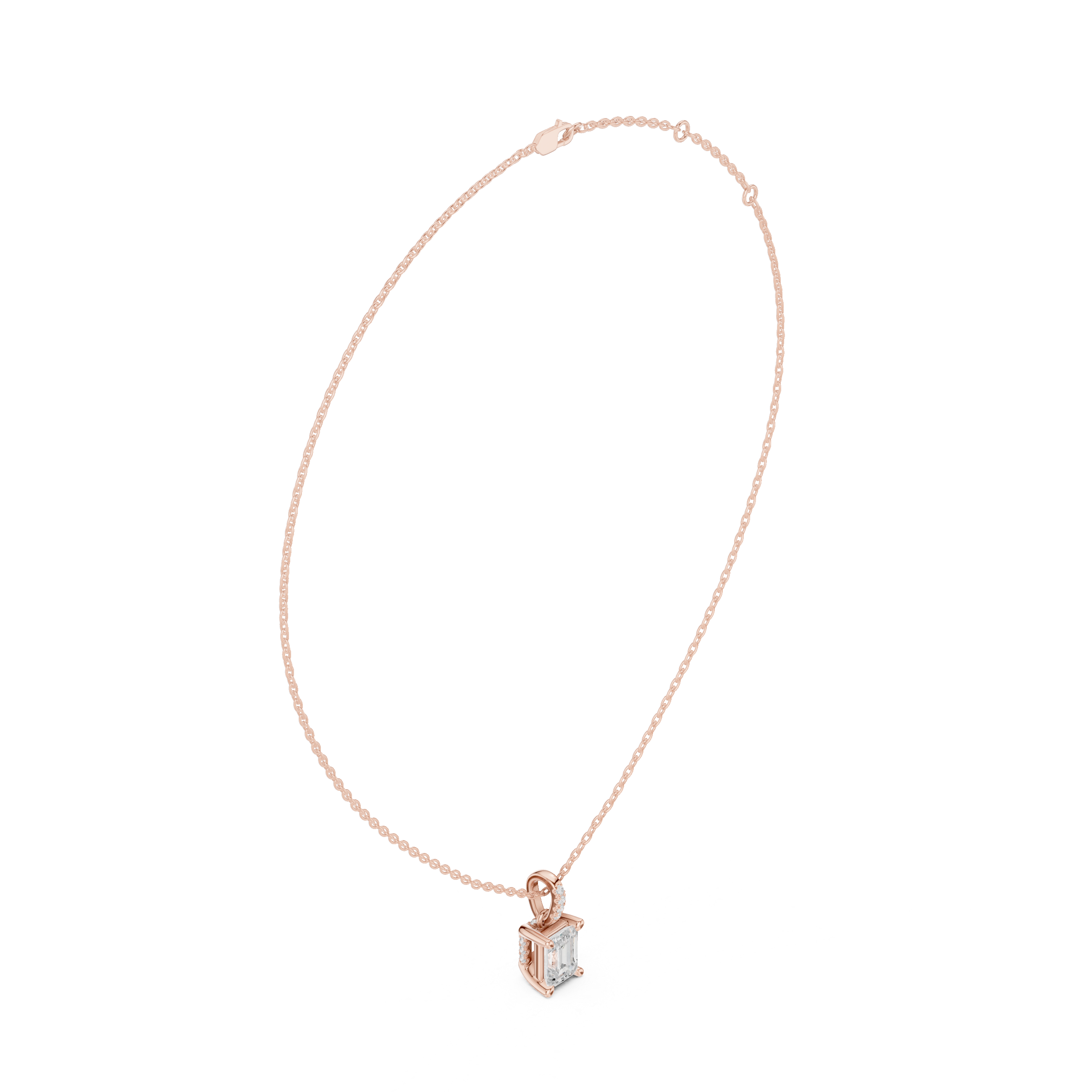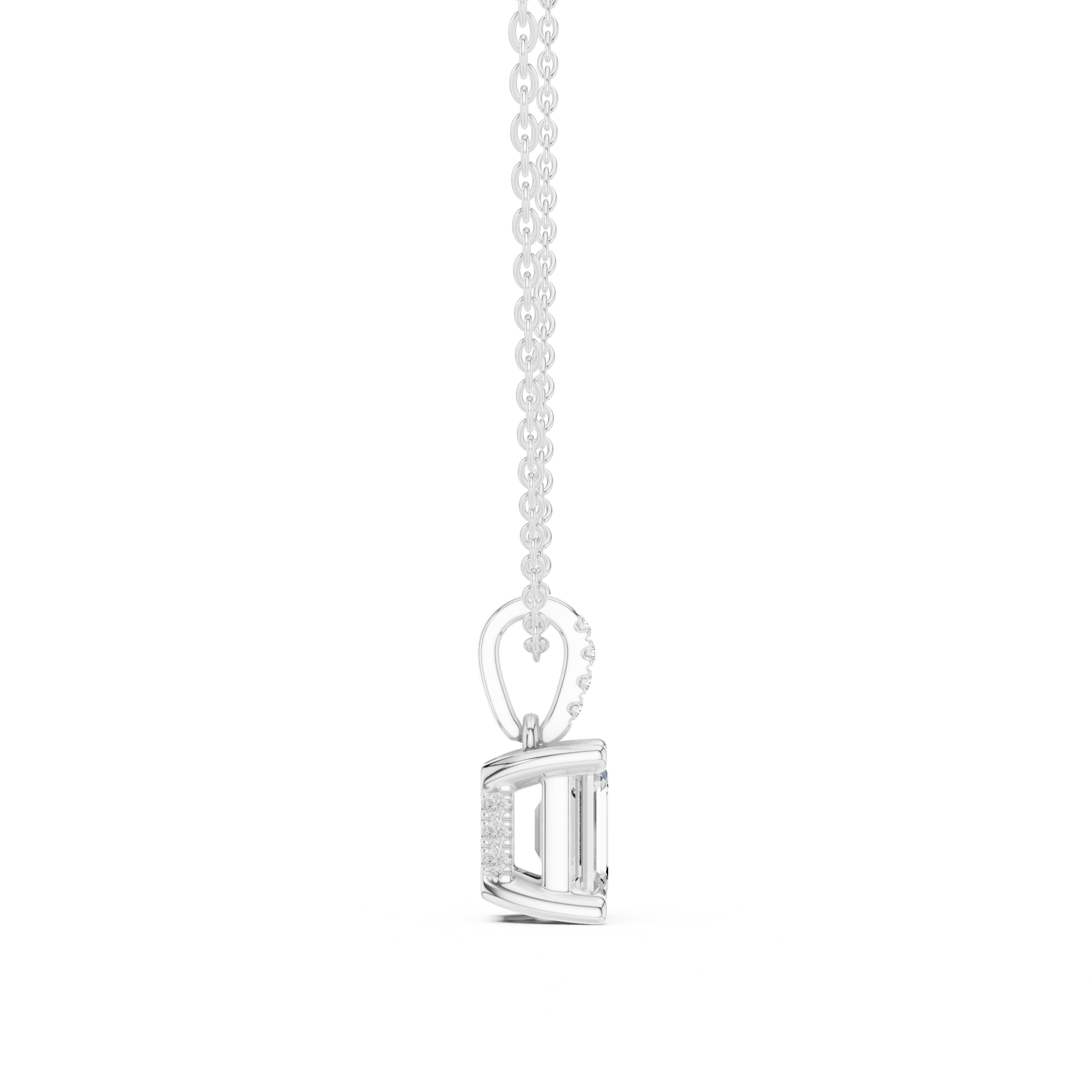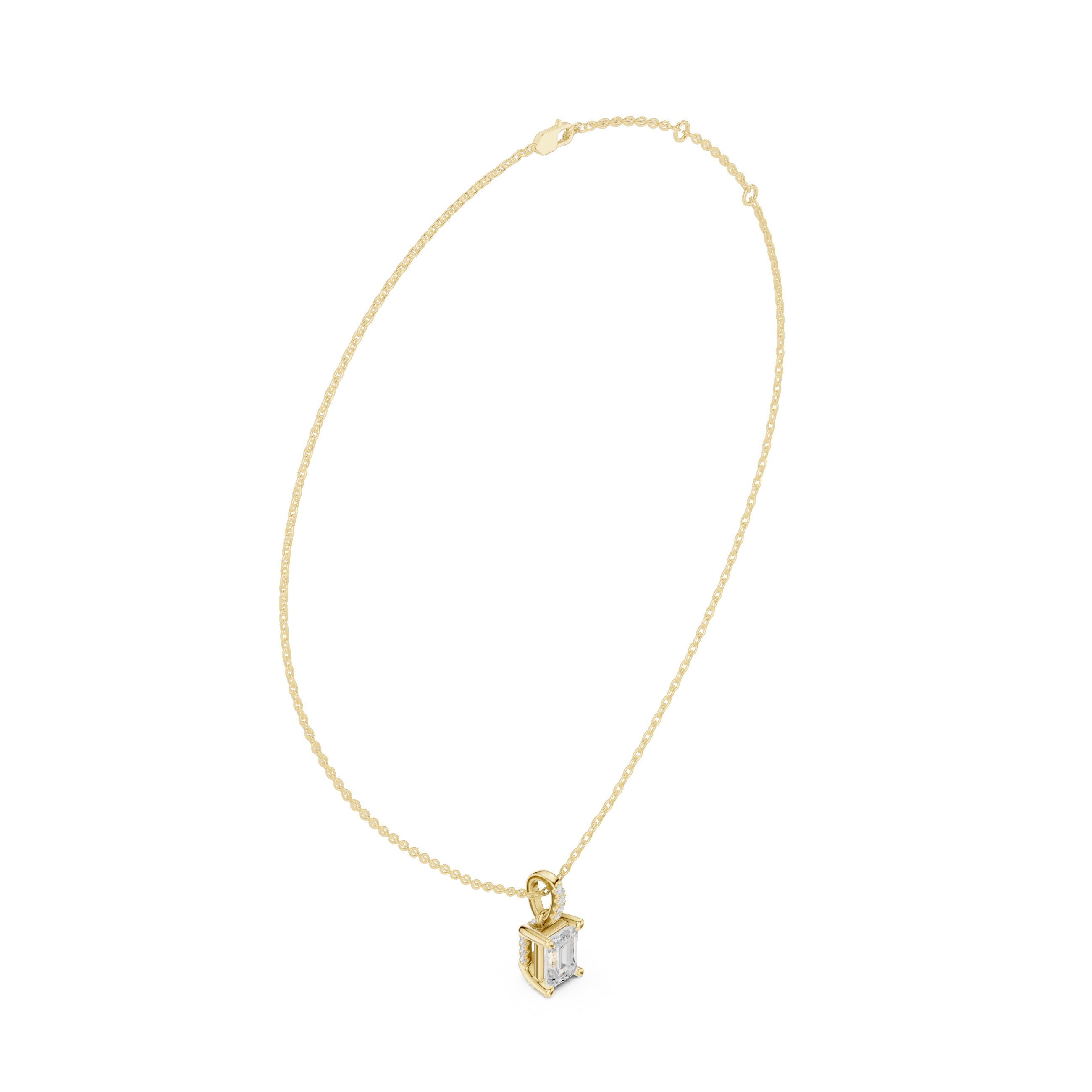Solitaire Necklace with Hidden Halo - Emerald Cut Lab Grown Diamond