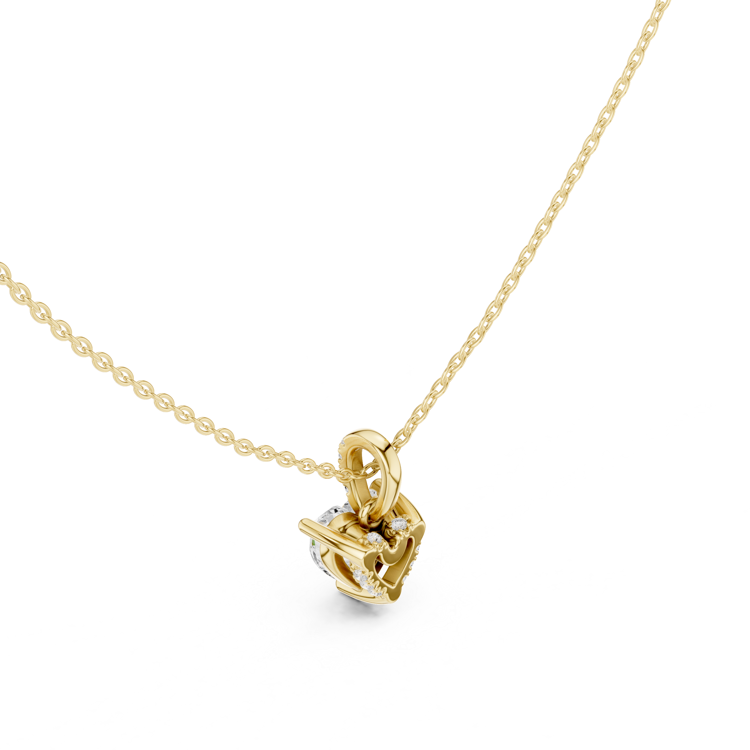 Solitaire Necklace with Hidden Halo - Heart Cut Lab Grown Diamond