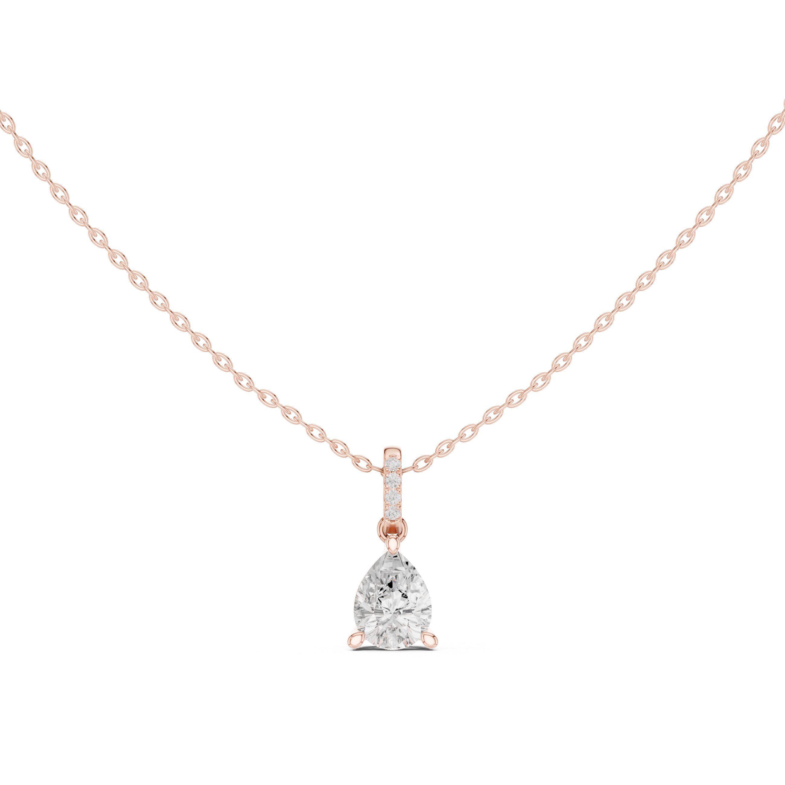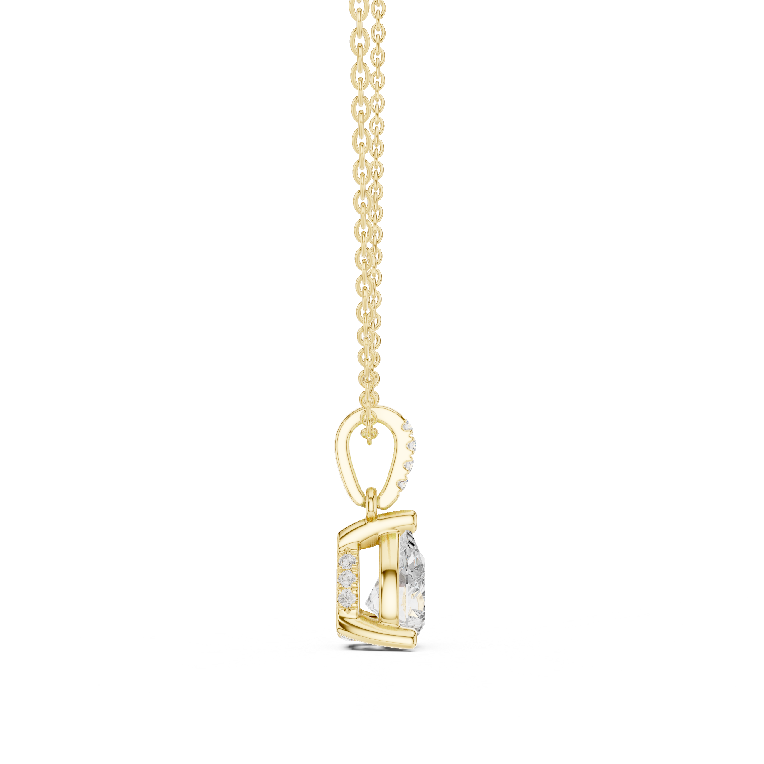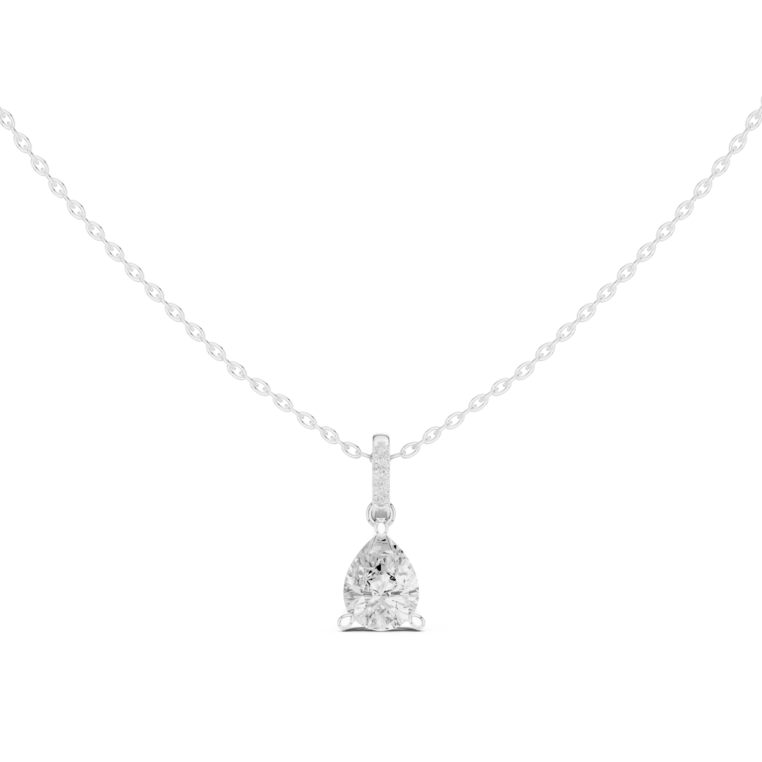 Solitaire Necklace with Hidden Halo - Pear Cut Lab Grown Diamond