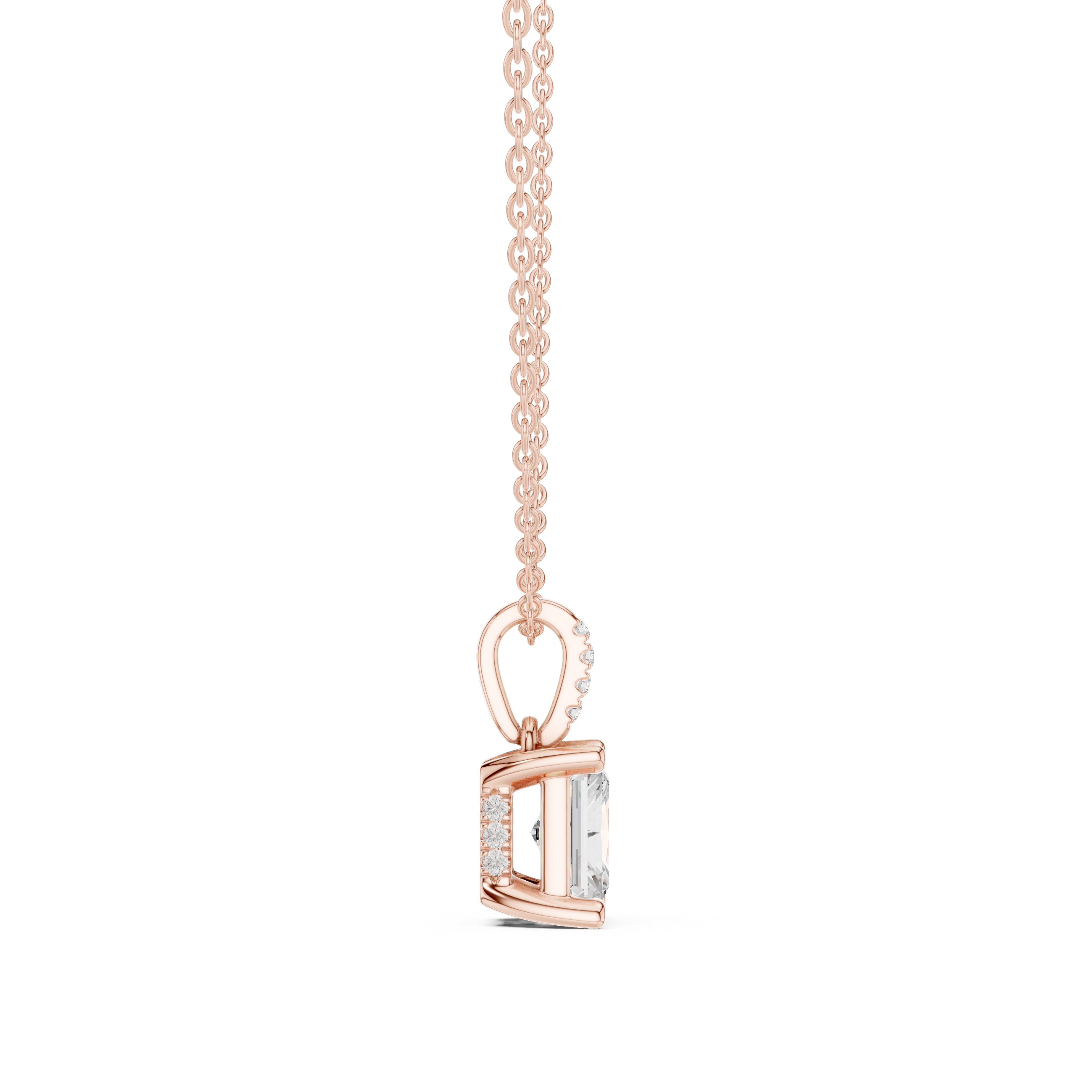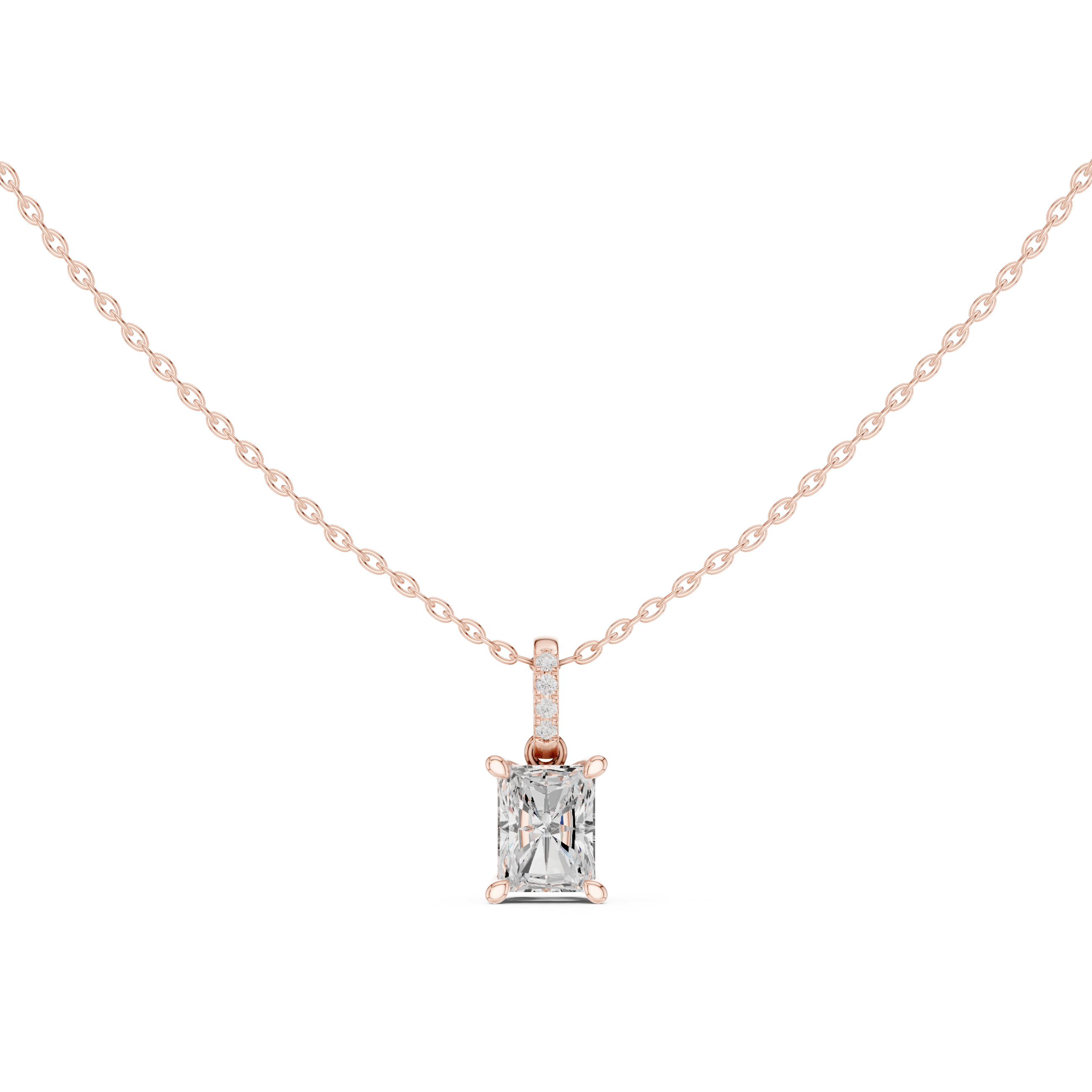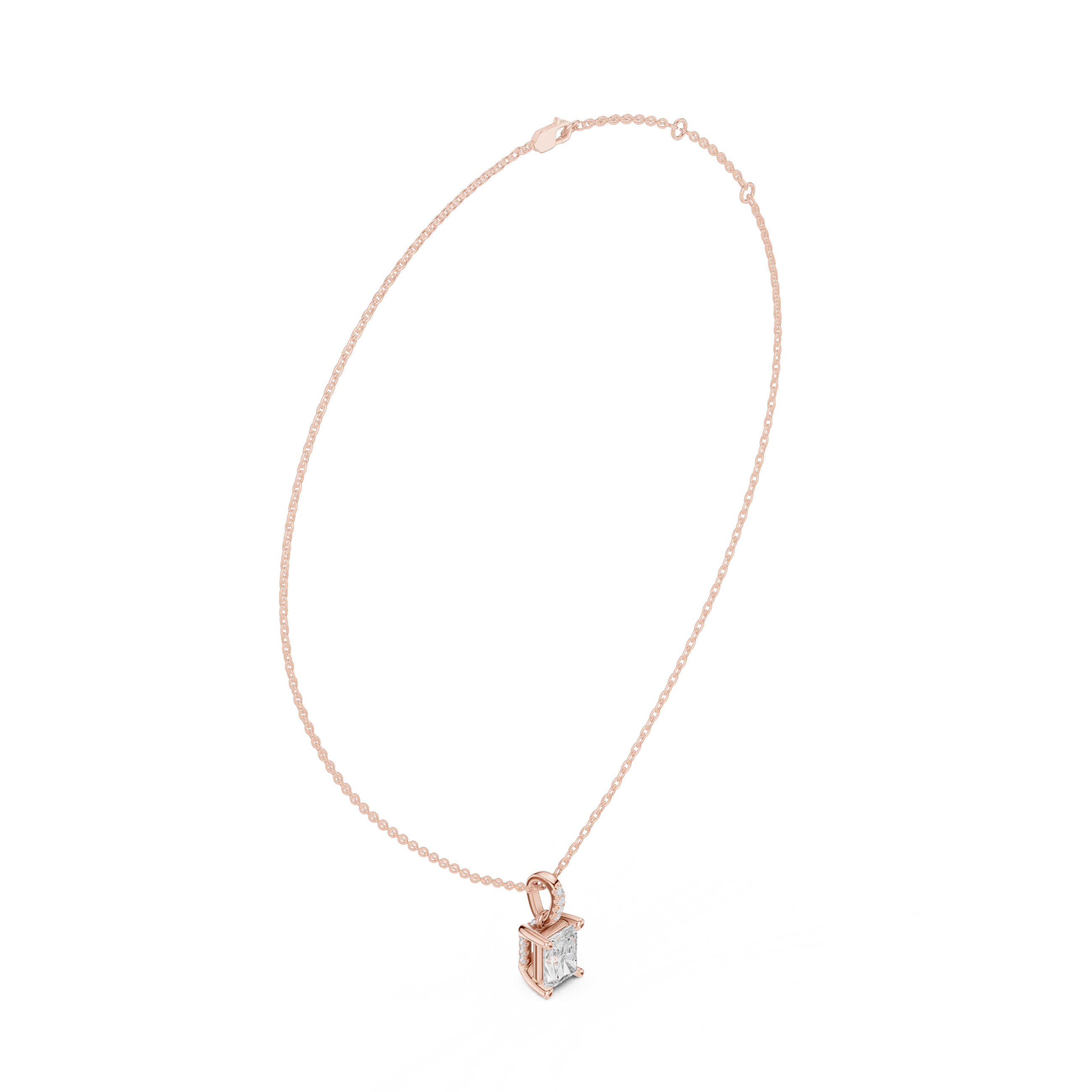 Solitaire Necklace with Hidden Halo - Radiant Cut Lab Grown Diamond
