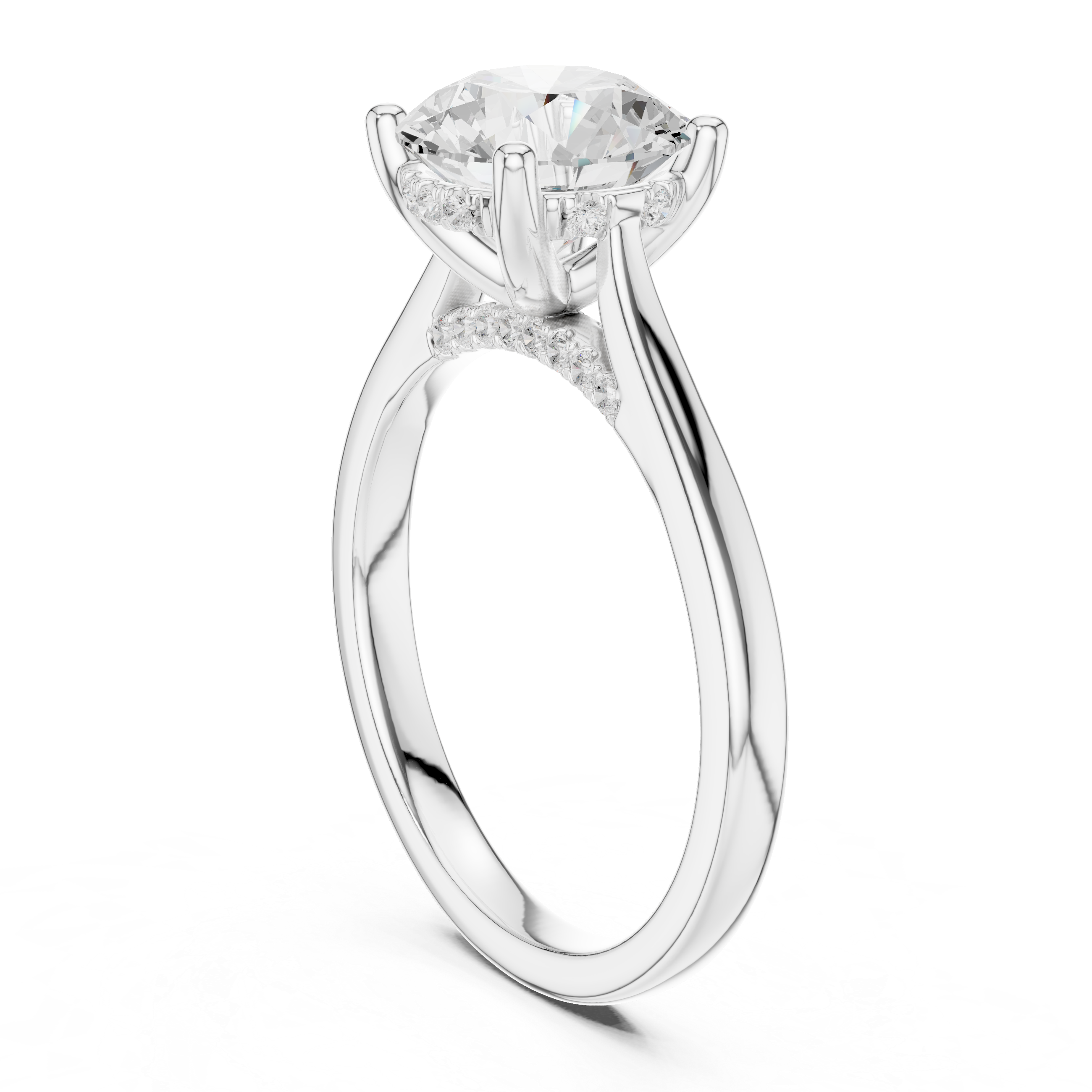 The Solitaire Side Pave Band elegantly enhances any diamond shape with a refined row of pavé-set diamonds along its shoulders. Crafted to balance sophistication and subtle brilliance, this band complements the solitaire centerpiece flawlessly, adding depth and graceful sparkle. Its timeless design ensures versatility and enduring style for those who appreciate understated luxury.