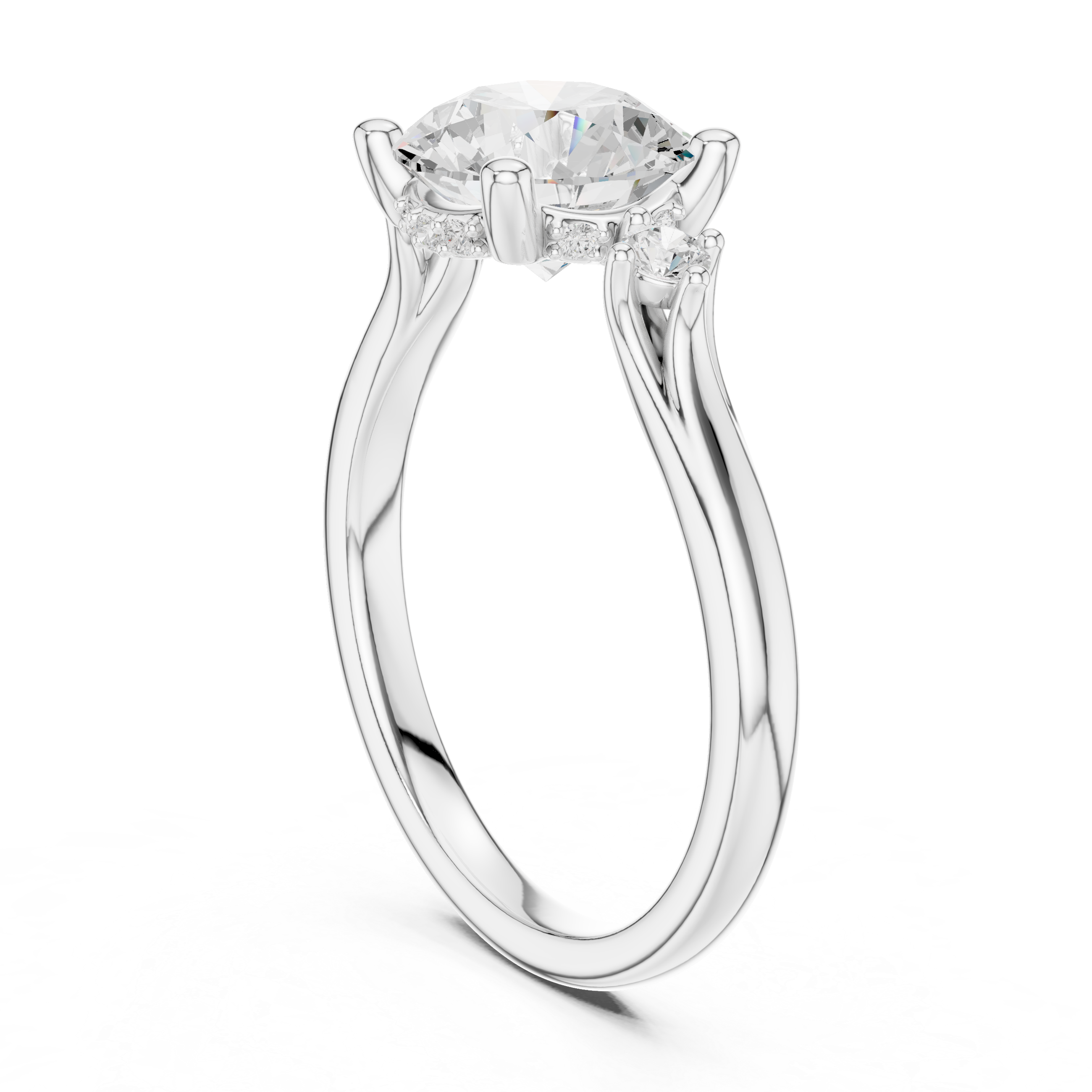 Three Stone Side Stone Small Round Engagement Ring - All Shape