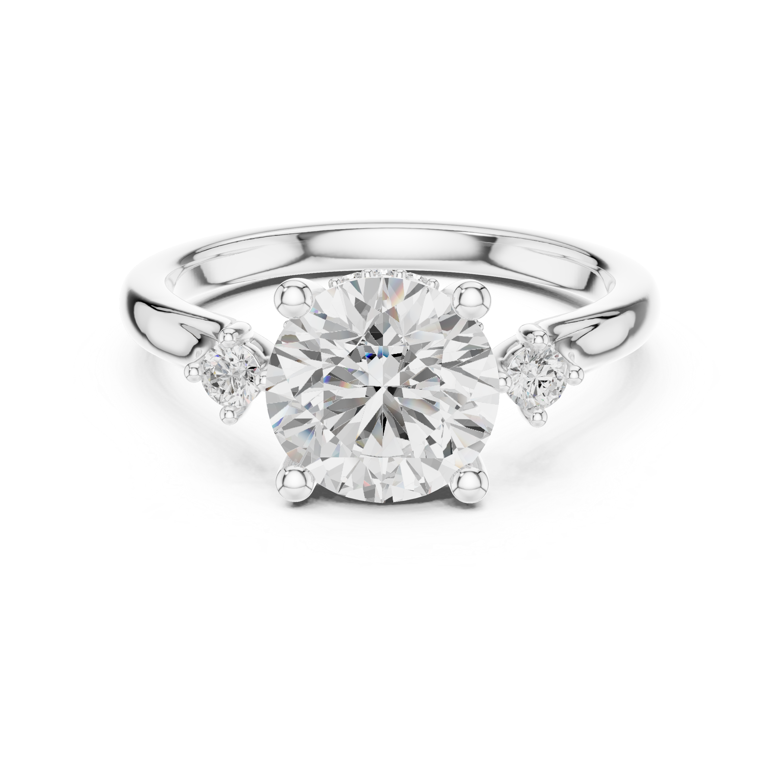 Elevate your promise with this sophisticated Three Stone Side Stone Small Round Engagement Ring, designed to complement any shape. Featuring a delicate central round diamond flanked by two smaller side stones, this ring embodies timeless elegance and subtle brilliance. Its refined craftsmanship enhances the sparkle and symbolizes enduring commitment, perfectly suited for those who appreciate understated luxury and meaningful design.