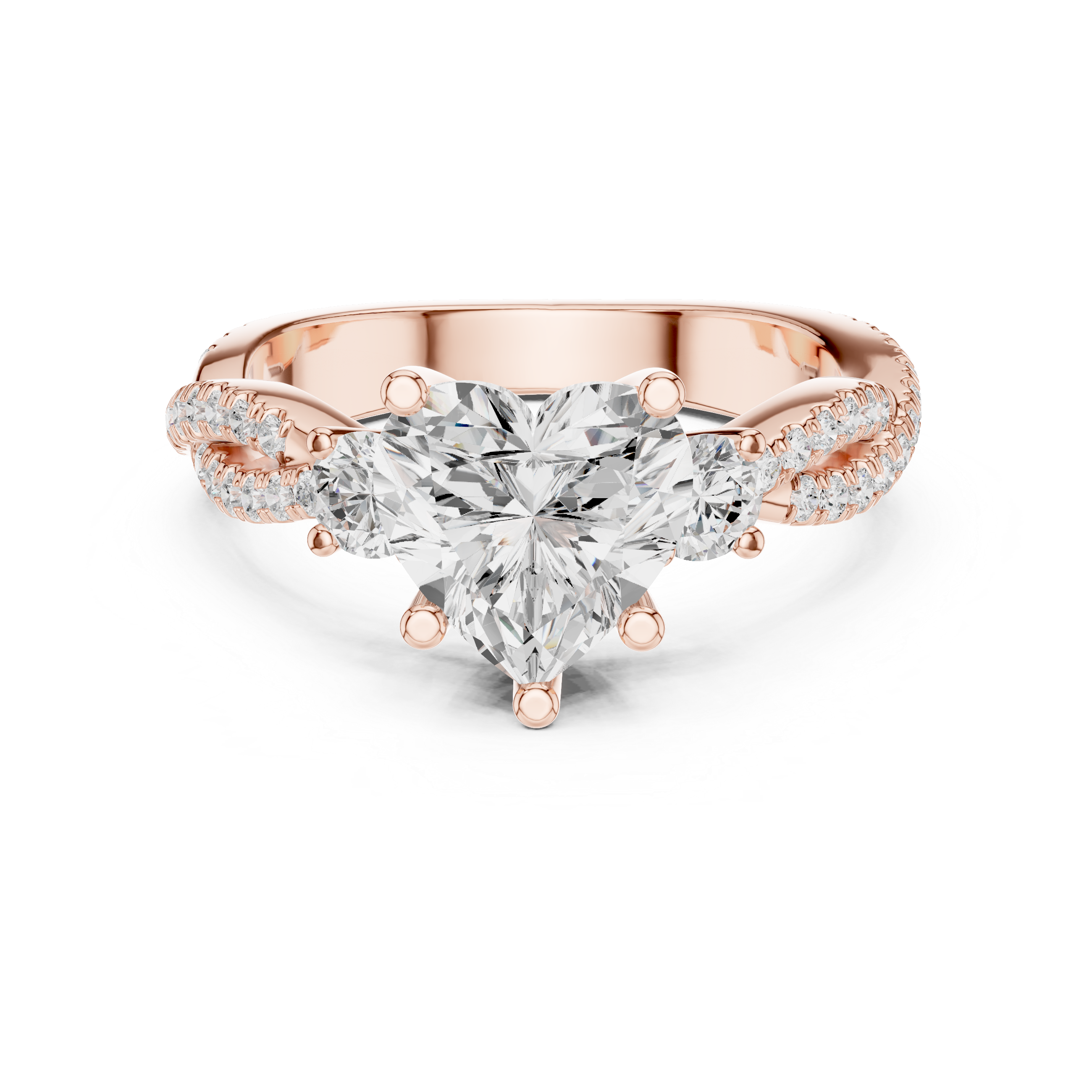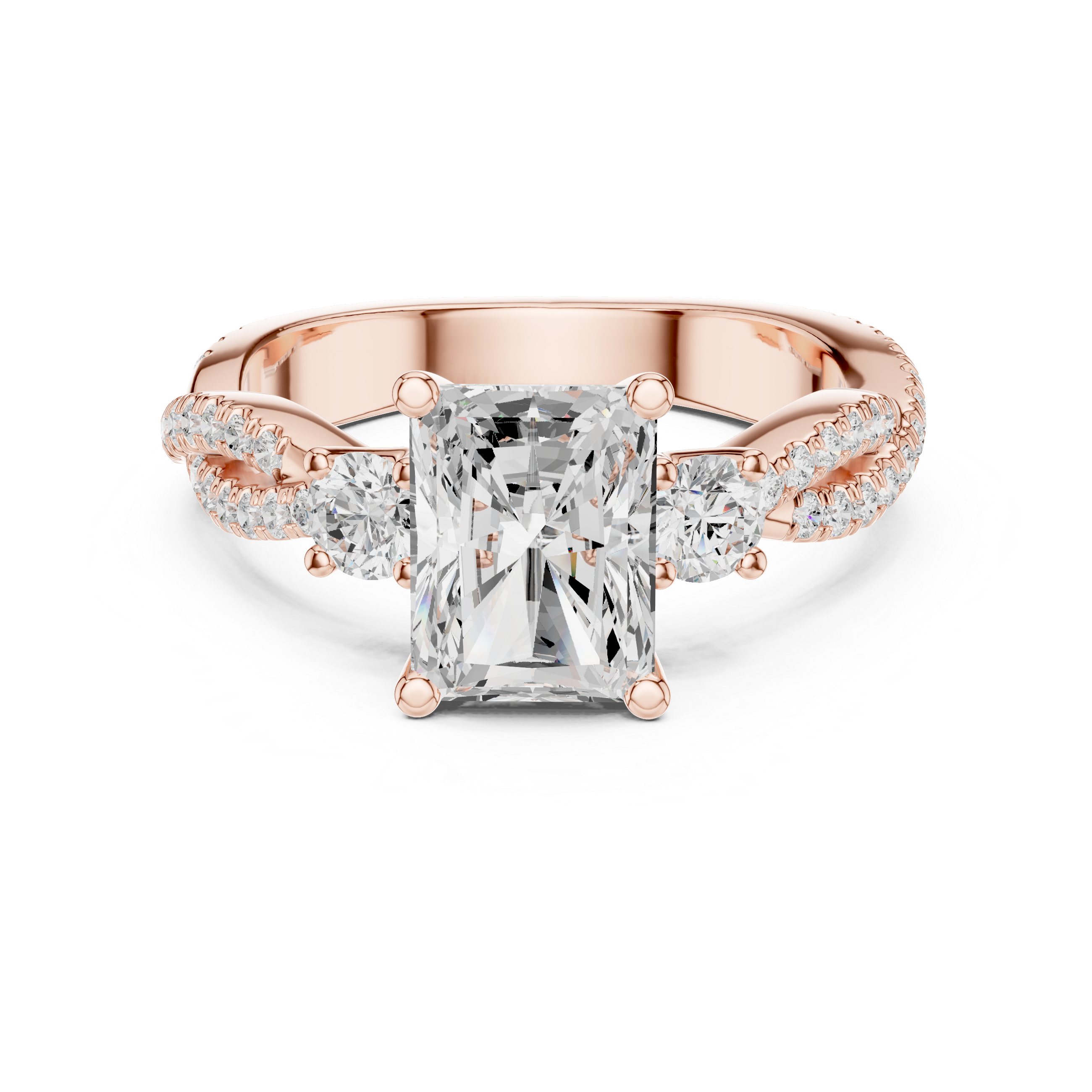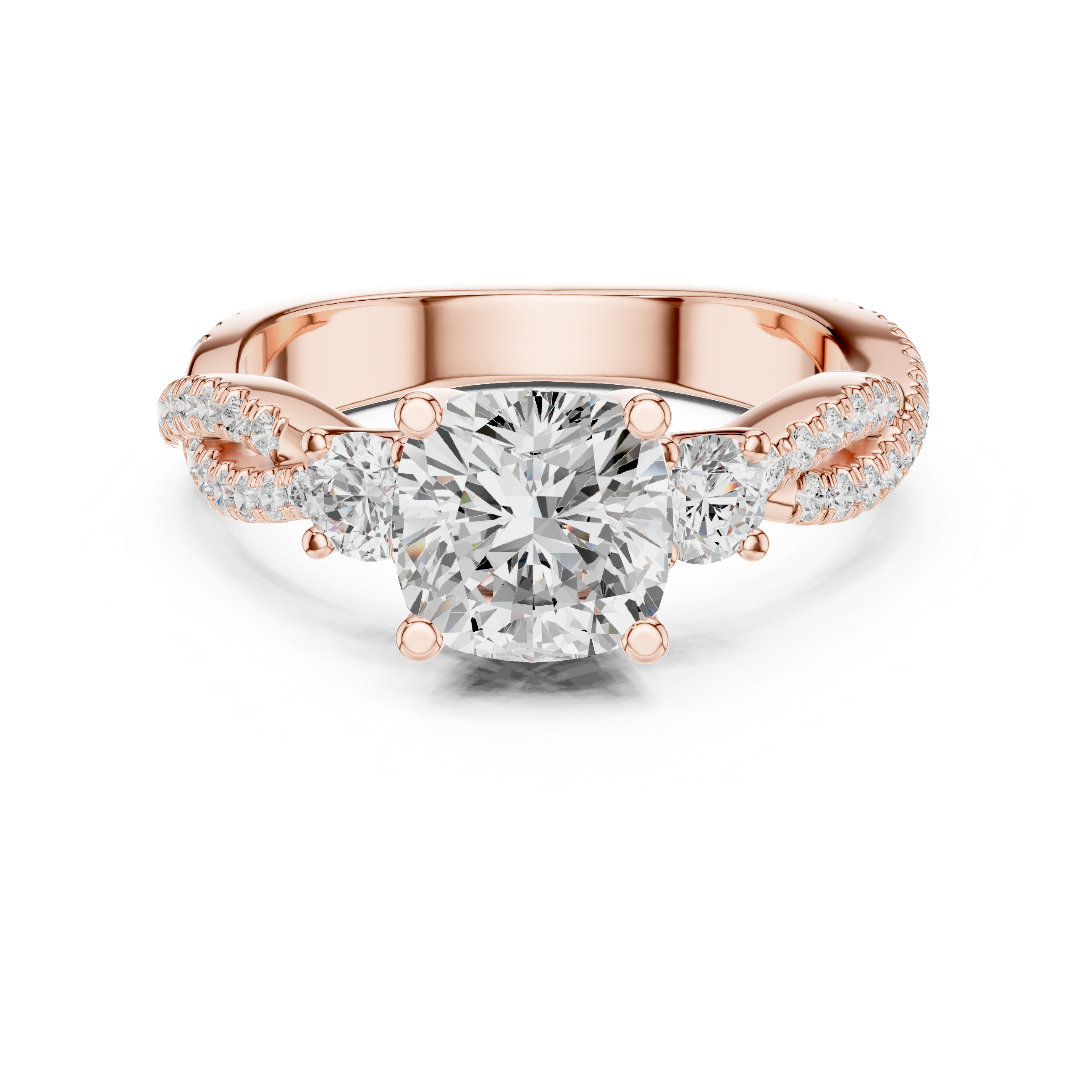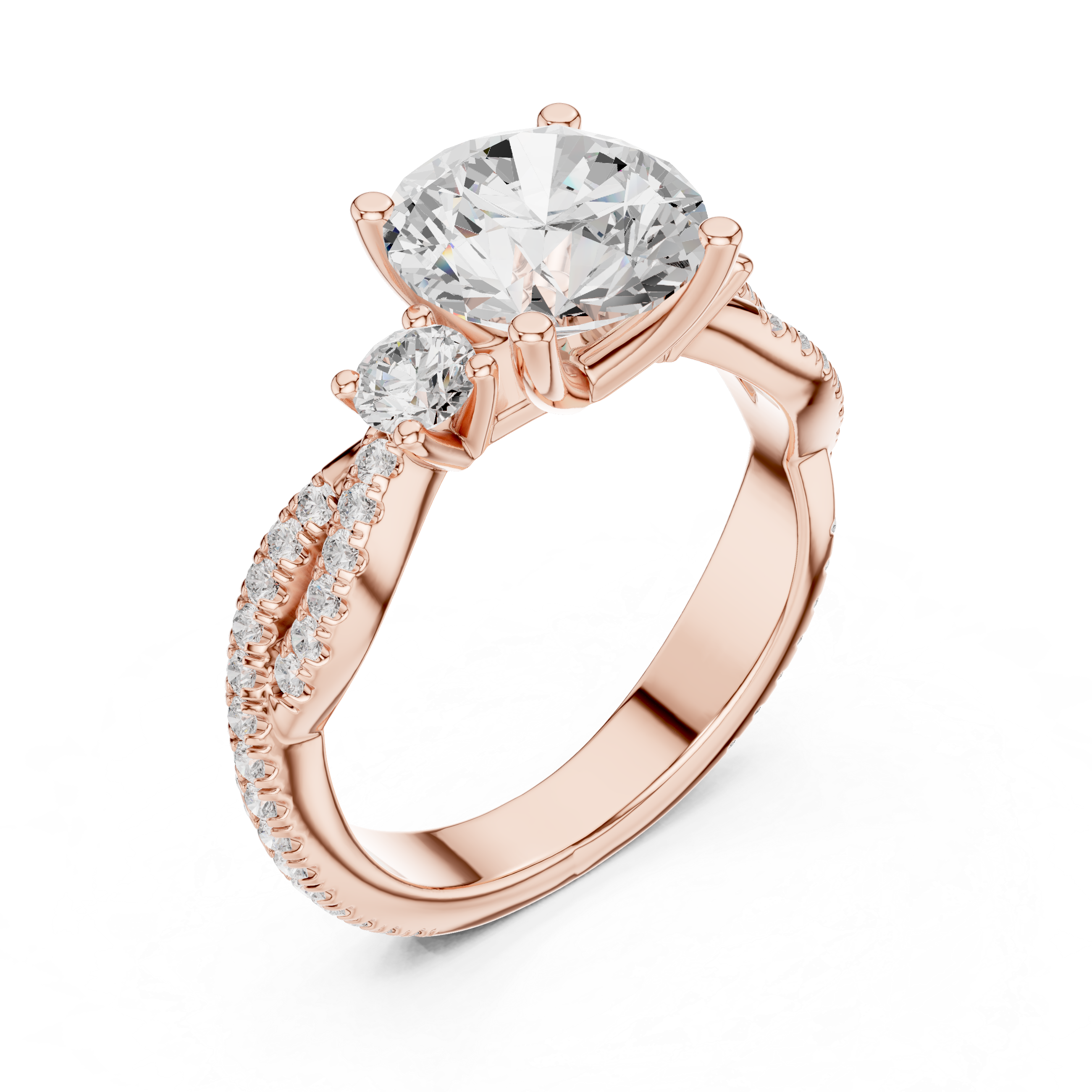 Elevate your elegance with the Twisted Pave Band Three Stone Solitaire, thoughtfully designed to complement all gemstone shapes. This sophisticated ring features a gracefully twisted band adorned with sparkling pave stones, enhancing the brilliance of the three central solitaires. Perfect for marking timeless moments, its refined design offers a harmonious blend of classic and contemporary allure.
